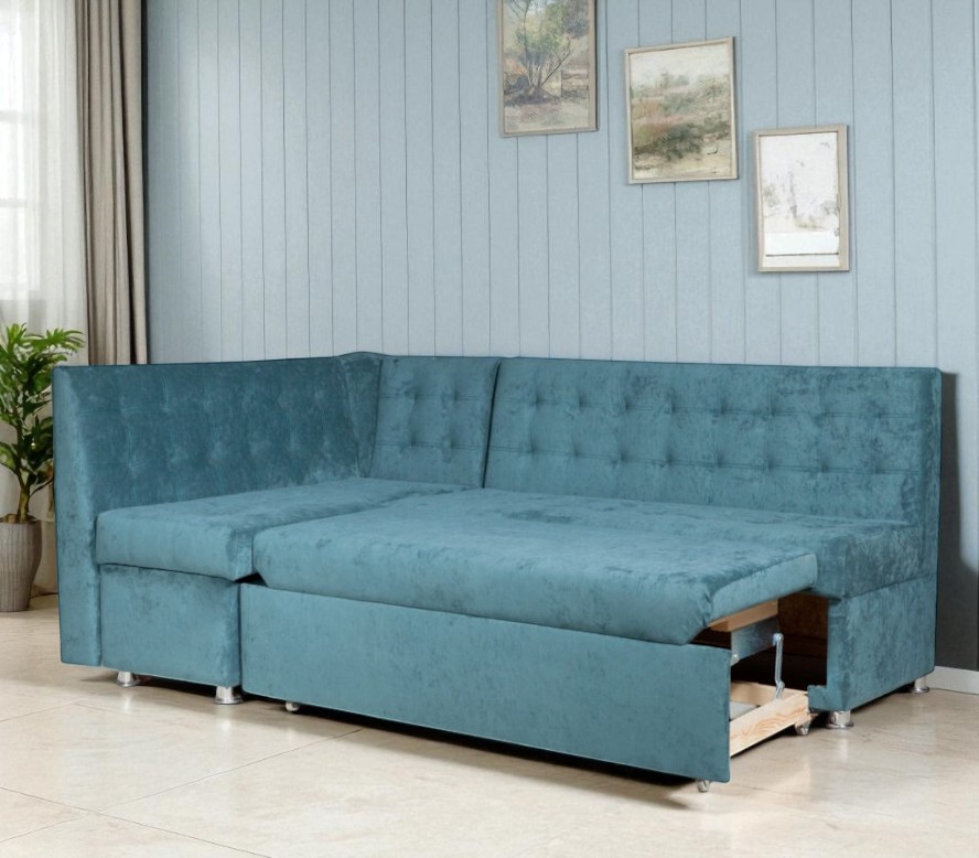 В НАЛИЧИИ! Кухонный уголок со спальным местом Порто СП (105х200 см, угол "7", велюр Оникс 16 - синий)