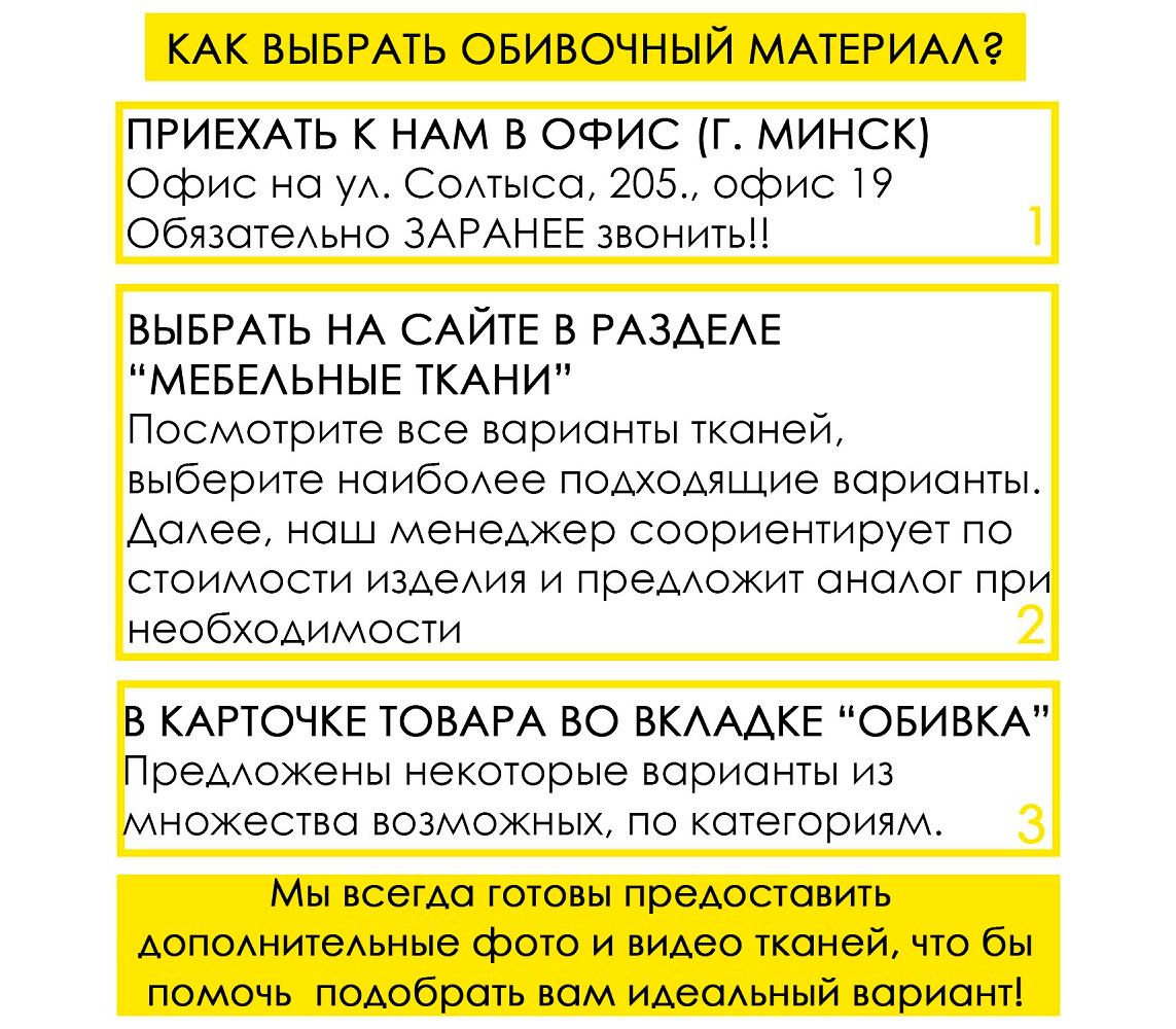 Если вам нужно больше вариантов обивки - обращайтесь к менеджеру или переходите в раздел Мебельные ткани.
