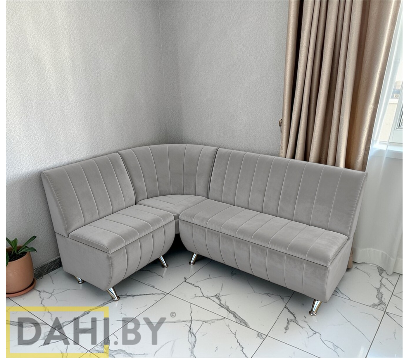 Стильный кухонный диван в антивандальном велюре (с нишами).