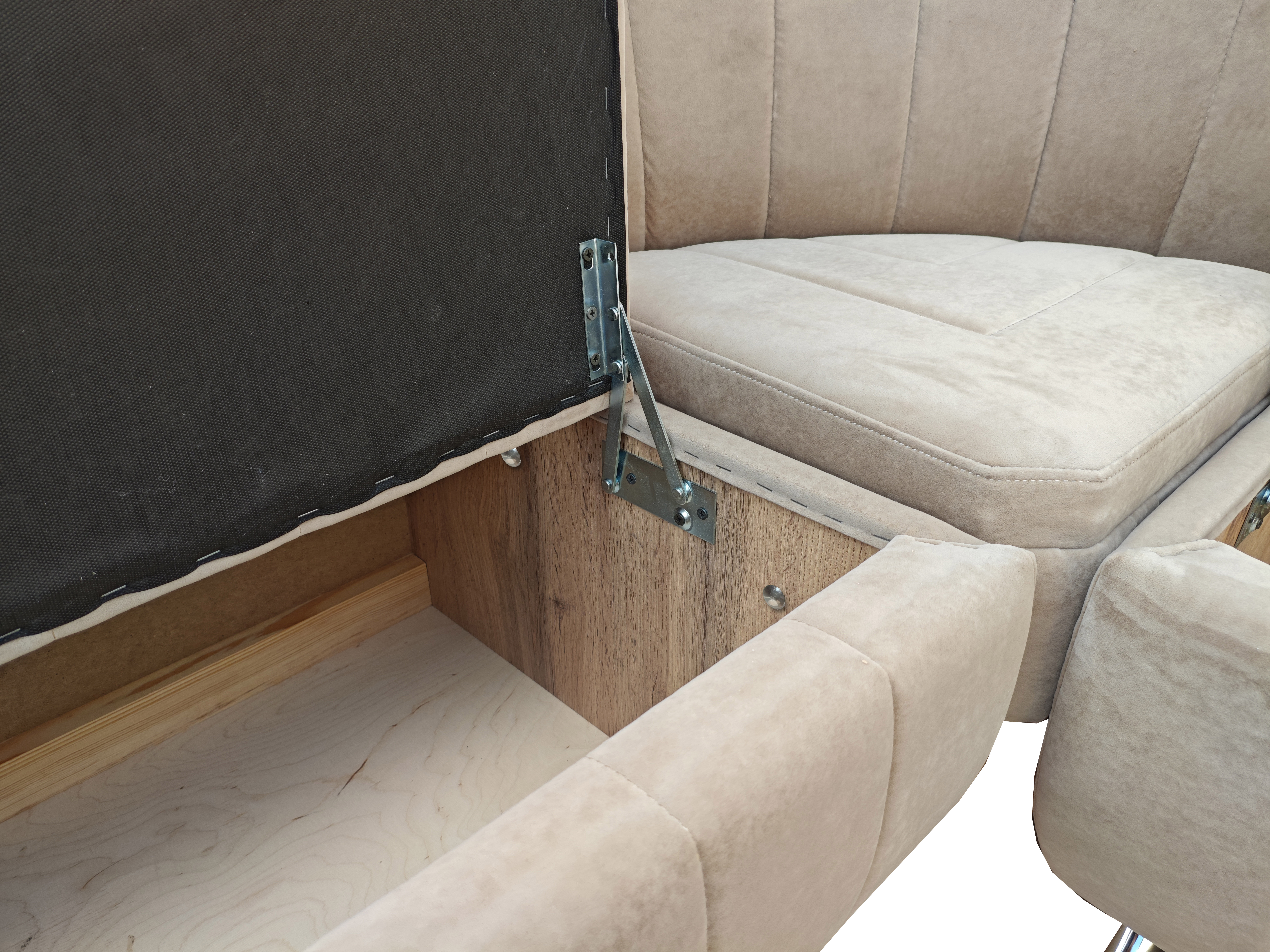 Порядок на кухне: Под сиденьями расположены 2 вместительные ниши. В них удобно хранить кухонную утварь, запасы продуктов или текстиль, освобождая место в шкафах.