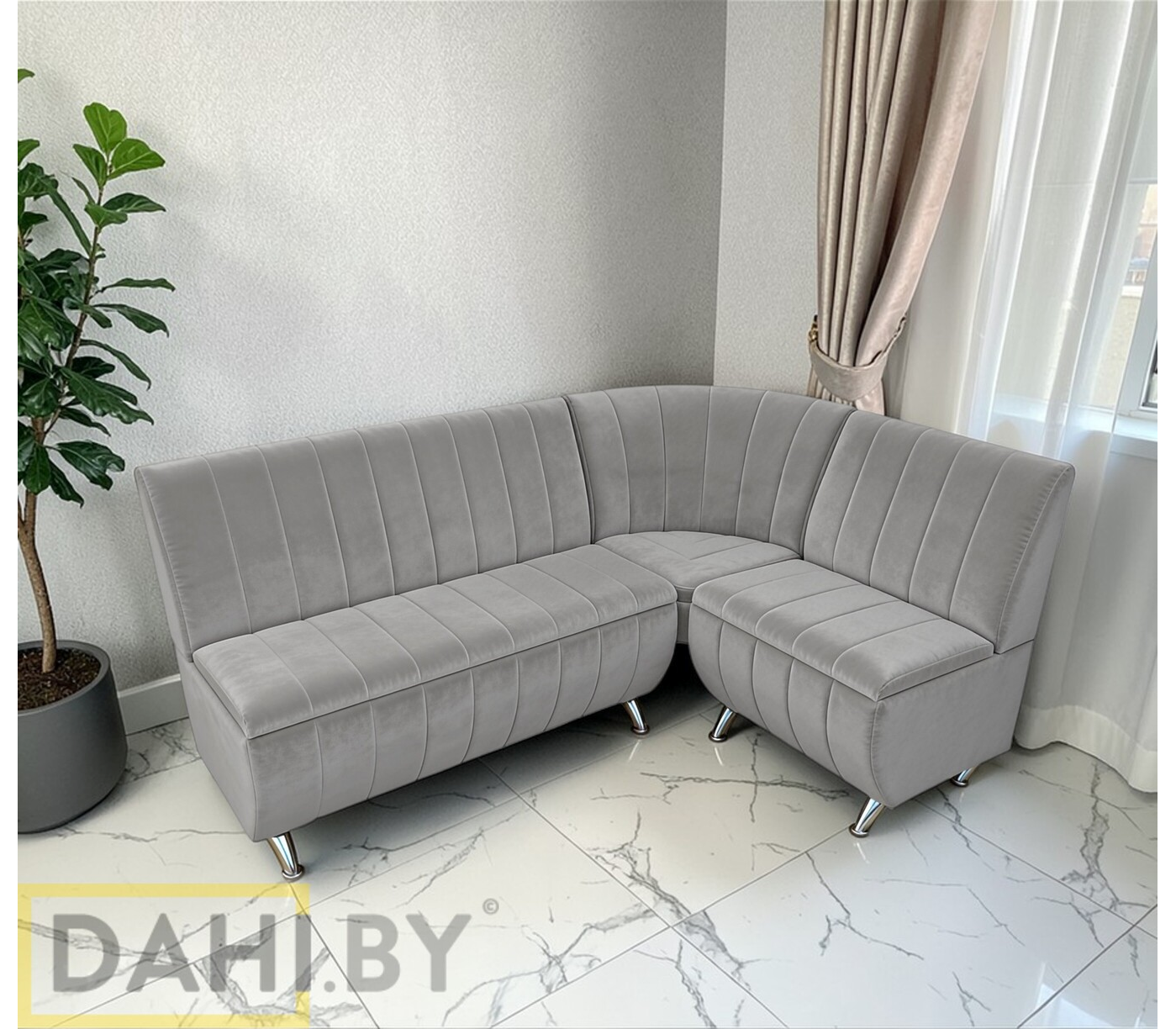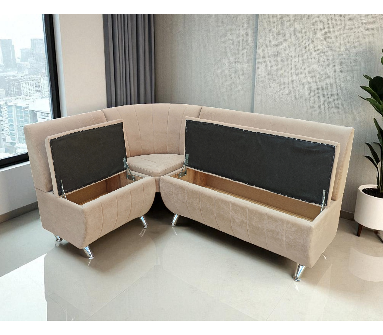 Стильный кухонный диван в антивандальном велюре (с нишами).