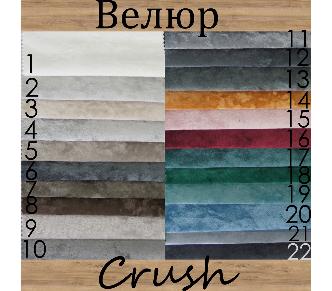 "Crush" - это не только стильный, но и долговечный материал, способный прослужить вам долгие годы. Ваша мебель, обтянутая этим велюром, будет выглядеть элегантно и оригинально, привлекая восхищенные взгляды гостей и создавая уютную атмосферу в вашем доме.